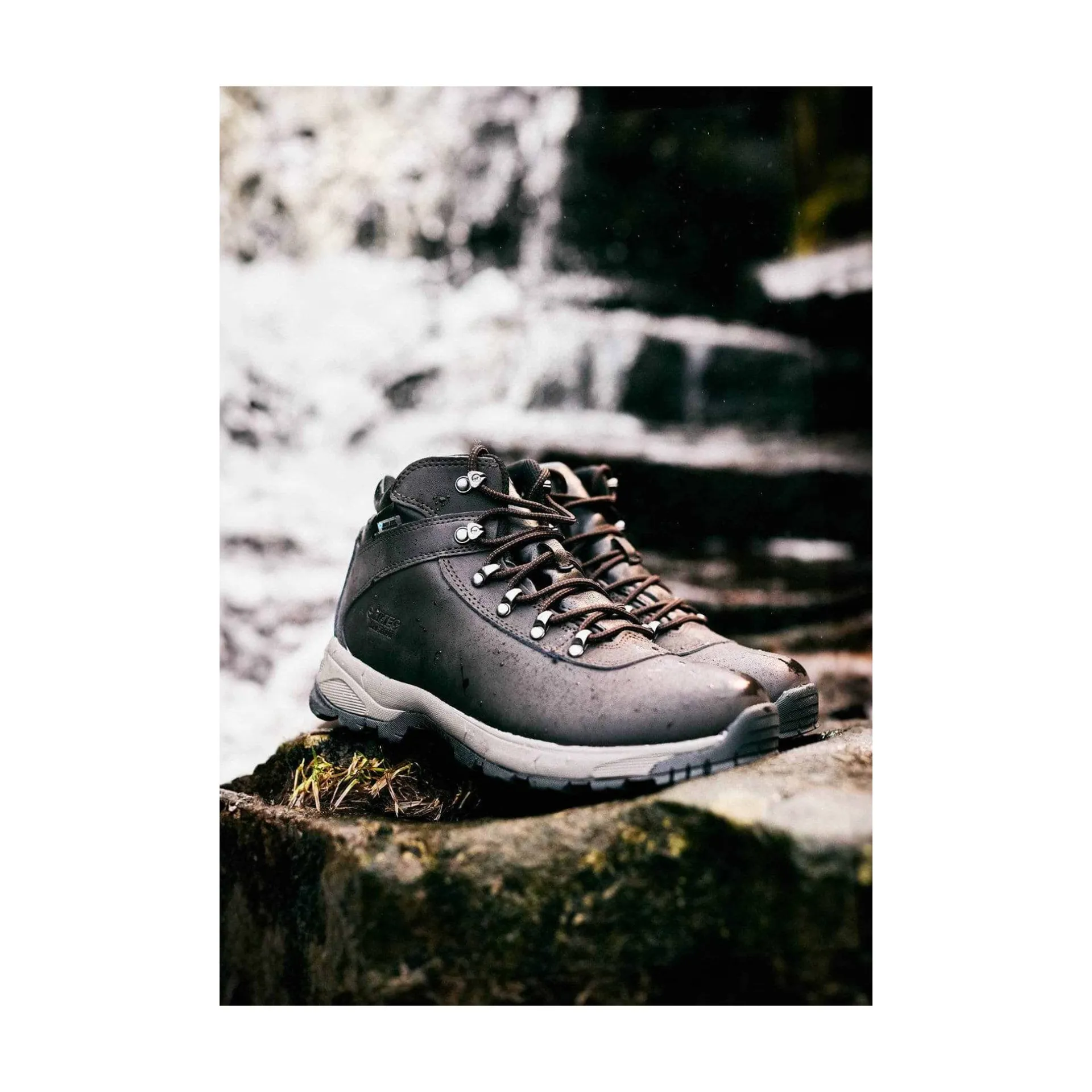 Product DescriptionThe Eurotrek Lite Waterproof walking boots for men are ideal for light hiking.FeaturesLeather upper for durability and comfortDri-Tec waterproof, breathable membrane keeps feet dryDurable rustproof hardwearing lacing system creates a snug, secure fitRemovable moulded EVA footbed delivers underfoot cushioningCompression-moulded EVA midsole with shank for ultimate cushioningMDT rubber outsole improves grip and provides durabilityFitMaterial CompositionUpper: Coated Leather. Lining: Textile. Sole: Rubber.Care
