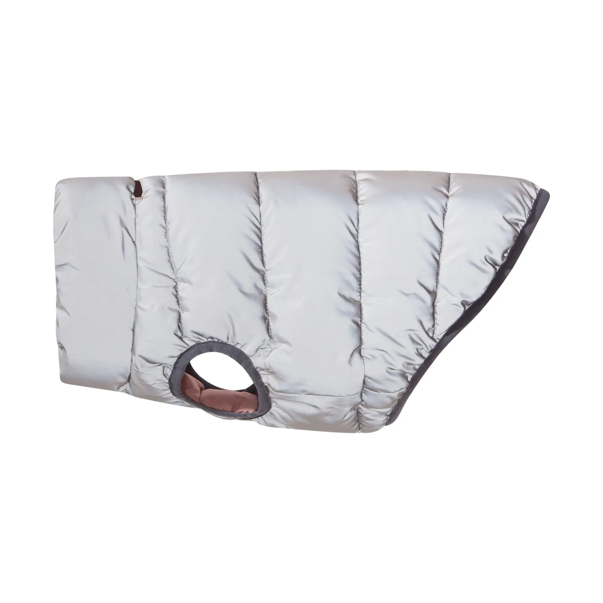 Product DescriptionInsulated for warmth and comfort, our Fetch coat for dogs keeps your pet cosy on cold winter walks. This stylish jacket is lightweight with a full length zip to make putting it on your dog stress-free. The reversible design has a reflective option so that your dog can be seen by cars and cyclists on dark early morning walks in the winter. A cut-out in the neck conveniently allows you to attach a lead while your dog is wearing the jacket. The colourblock pattern in tones inspired by the Yorkshire landscape with TOG24 printed on the neck gives the coat a sporty look both you and your canine companion will love.FeaturesLightweight u0026amp; padded dog coatReversible jacketOuter jacket is colour blocked u0026amp; Inner side of jacket is reflectiveZip fasteningHole for lead to be attachedTOG24 print on collarIntended for pet use onlyThis is not a toy and dogs should be supervised when wearingFitMaterial Composition100% Polyester.CareMachine washable.