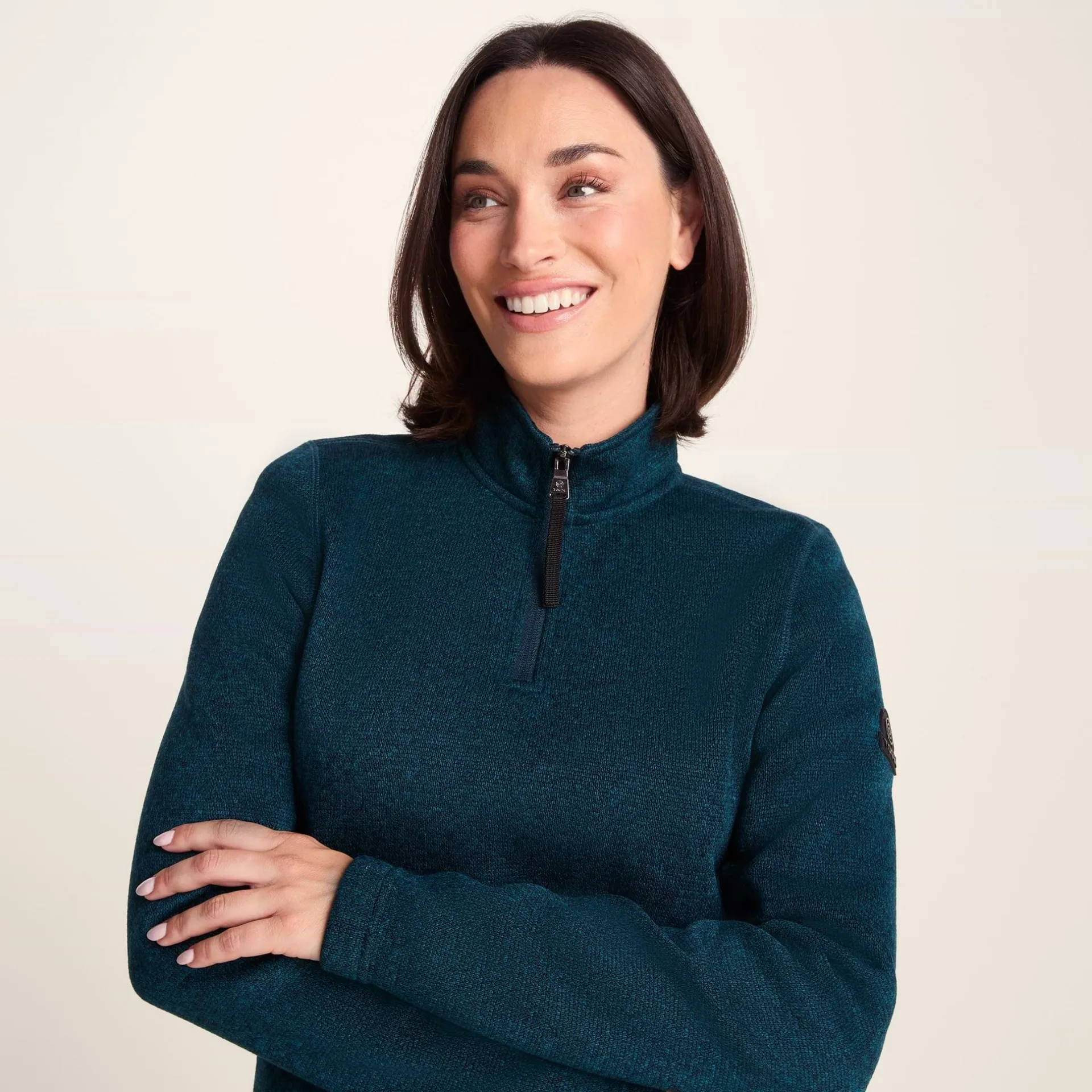 Product DescriptionSupersoft and a really useful layering piece, our Pearson knitlook women’s ¼ zip top combines the relaxed appeal of knitwear with the insulating warmth of fleece. Ideal for going to an outdoor workout or doing the school run, it can be worn alone on cool days yet easily fits under a coat or waterproof. Cut in a flattering, streamlined shape with a high zip-up neck for extra snugness, Pearson is anti-pill and comes in colours that reflect the sunlit North Sea and heather-clad moors of Yorkshire. ‘Truth Over Glory’ branding appears as an embossed Yorkshire rose on the sleeve.FeaturesSupersoft and warm knitlook fleeceAnti-pillZip neck openingEmbossed rubber Yorkshire Rose badge on sleeveFitStudio model Lauren is wearing size 8 and is 5’7