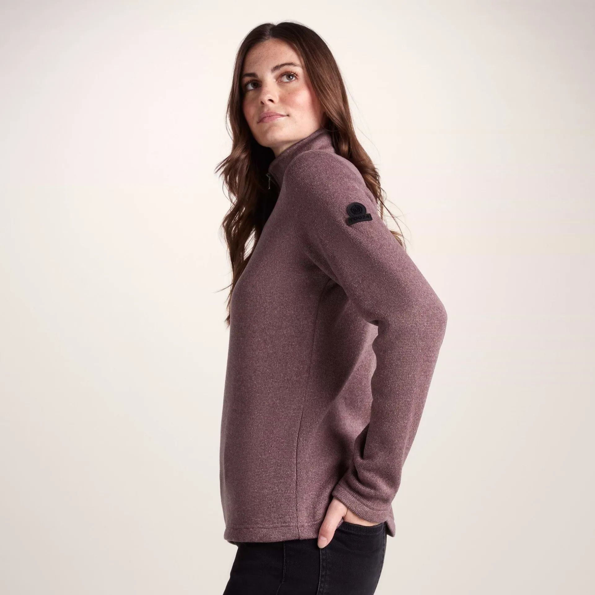 Product DescriptionSupersoft and a really useful layering piece, our Pearson knitlook women’s ¼ zip top combines the relaxed appeal of knitwear with the insulating warmth of fleece. Ideal for going to an outdoor workout or doing the school run, it can be worn alone on cool days yet easily fits under a coat or waterproof. Cut in a flattering, streamlined shape with a high zip-up neck for extra snugness, Pearson is anti-pill and comes in colours that reflect the sunlit North Sea and heather-clad moors of Yorkshire. ‘Truth Over Glory’ branding appears as an embossed Yorkshire rose on the sleeve.FeaturesSupersoft and warm knitlook fleeceAnti-pillZip neck openingEmbossed rubber Yorkshire Rose badge on sleeveFitStudio model Gina Dress 8/10 uk Height 5’11* Bust 34c Waist 26.5