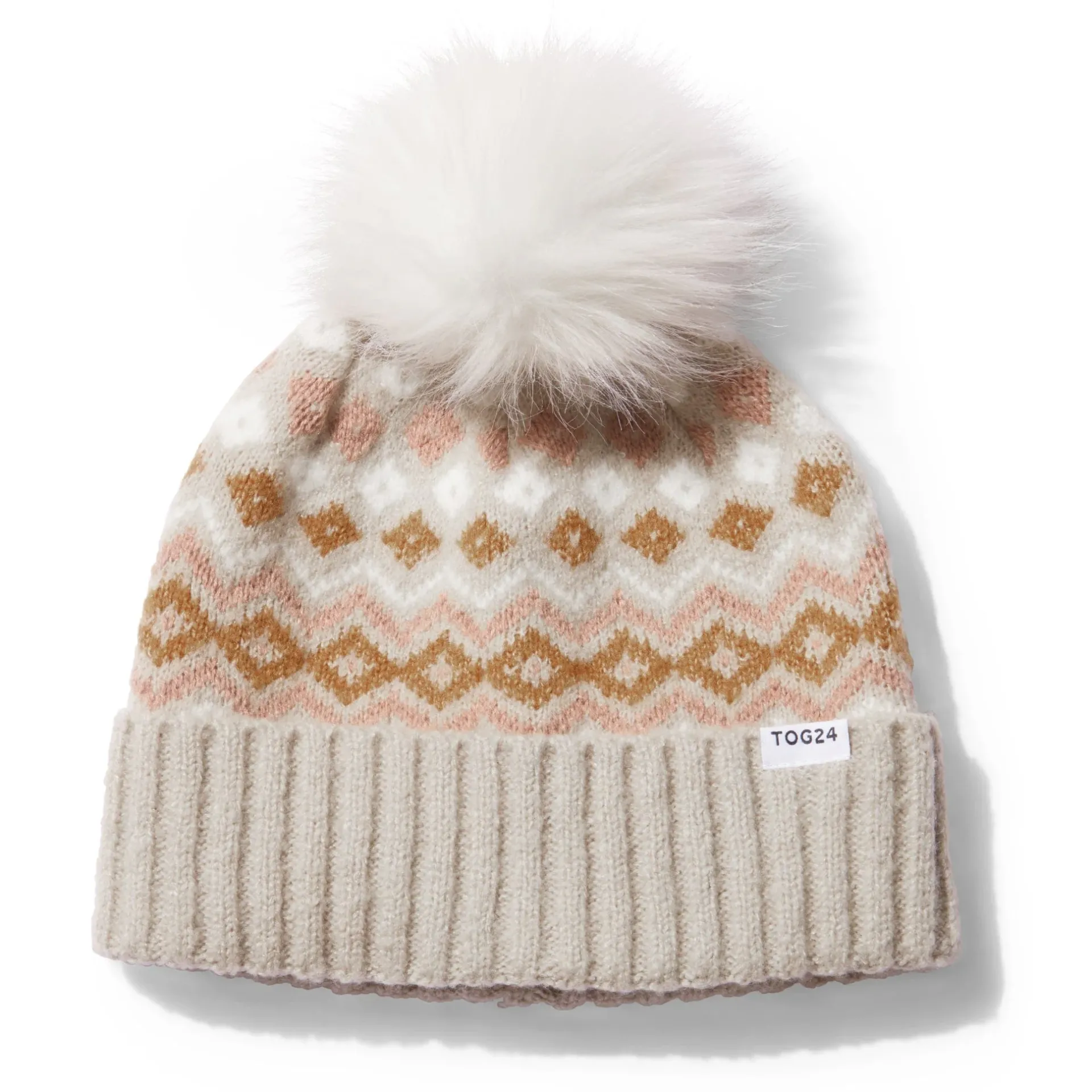 Black November EventGet an extra 15% off this product – automatically applied at checkoutCannot be used in conjunction with any other discountsProduct DescriptionFor a festive winter hat that’s stylish and warm, look no further than Redmund. This cosy knitted hat features a Fairisle design that adds a seasonal touch to your existing winter kit. With a lovely knitted texture and a ribbed turn-up edge, Redmund is super warm, making it ideal for long walks, hikes, and days out with family. This hat also features a trendy faux fur pom pom at the top for an extra festive, wintery feel that looks fantastic. The inner Borg headband also makes this hat soft against the skin while providing added protection for your forehead and ears.FeaturesFairisle knit bobble hatFaux fur pom pomRib turn upInner borg headbandTOG24 woven label on turn upFitMaterial CompositionBody: 77% Acrylic, 20% Polyamide, 3% Elastane. Lining: 100% Polyester.CareHand wash.