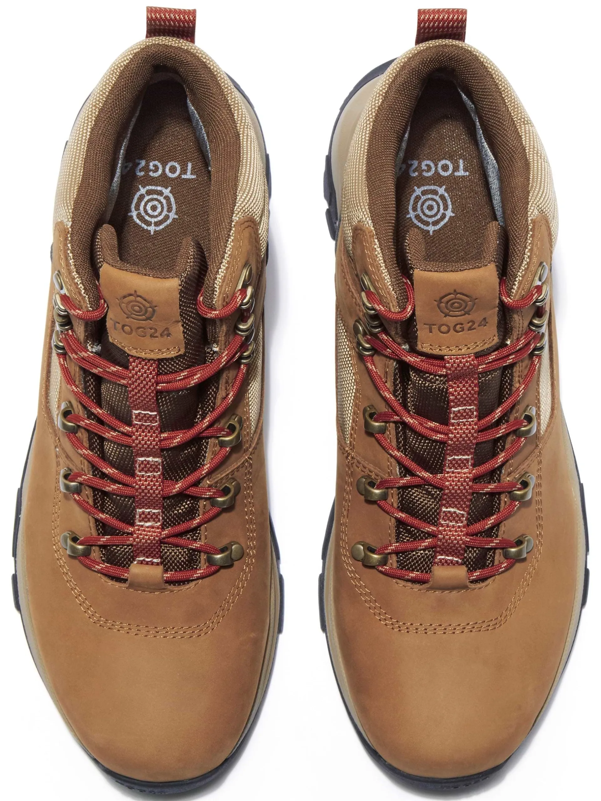 Clearance*This product is excluded from all additional promo code discountsProduct DescriptionOur designers set out to create the perfect mens leather walking boot and Tundra is the result. Supportive, waterproof and breathable, the boots let you walk for miles in comfort, giving you a good confident grip, and most importantly, keeping out the wet. Made from premium, high quality materials to exacting standards, they have moulded inners for comfort and deep cleats on the outer sole for outstanding grip and traction. A padded collar round the ankle gives you extra support, so you can set off for your hike in complete confidence. TOG24 stands for Truth Over Glory, and the high quality and uncompromising design of these leather hiking boots is the perfect embodiment of that. The boots are finished with the iconic TOG24 Yorkshire Rose embossed onto the heel and tongue and moulded into the sole.FeaturesWaterproof leather uppersWaterproof and breathable liningPadded ankleMoulded foam footbed and mid-sole for underfoot cushioningMetal lacing rings and flecked tubular lacesDurable cleated rubber outsole for gripEmbossed logo on the heel, tongue and soleFitMaterial CompositionUpper: Leather.CareWipe clean only.
