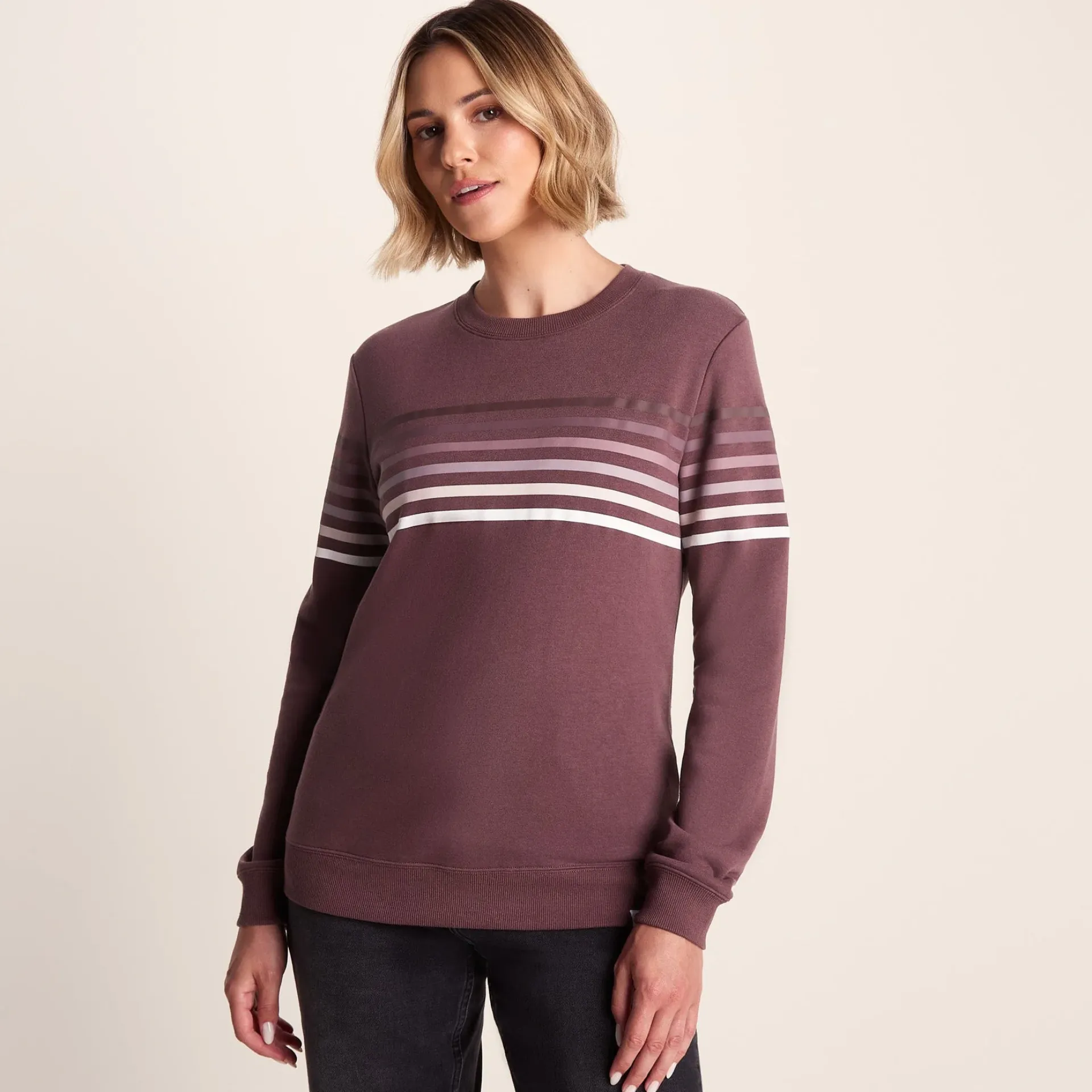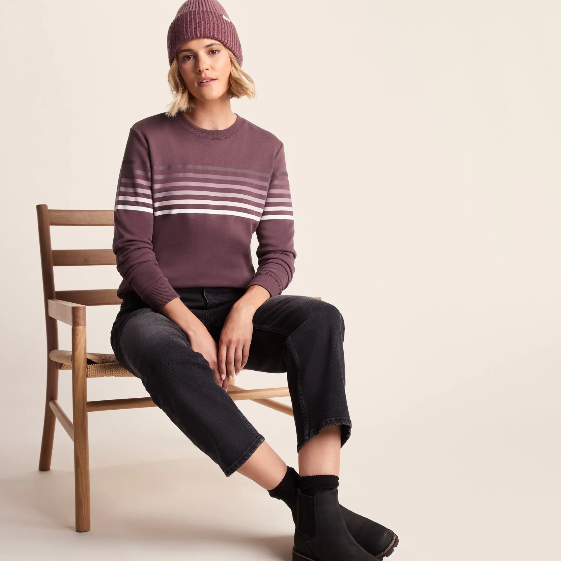 Product DescriptionSoft in texture with colourful stripes printed horizontally across the chest and sleeves, our Bayman is a super versatile women’s crew neck sweater. Layer over leggings for a care-free stroll across the Yorkshire countryside, or team with jeans and trainers for a casual meet-up with friends. Made from a sustainable cotton blend that is exceptionally soft against your skin and grown in ways that reduce the environmental impact of clothing production, Bayman is a cosy layer perfect for cooler summer days. Edged with generous ribbing around the crew neckline, cuffs and hem for a premium look and snug fit, Bayman won’t lose its shape, even after lots of washes. Designed by the our team in West Yorkshire, this gorgeous sweater is finished with a discreet TOG24 logo on the hem.FeaturesSupersoft sustainable cotton blend crew neck sweaterPrinted stripes on chest u0026amp; sleevesRib hem u0026amp; cuffsSmall woven label on hemFitStudio model Meg Dress 8 uk Height 5’10* Bust 34 Waist 25.5