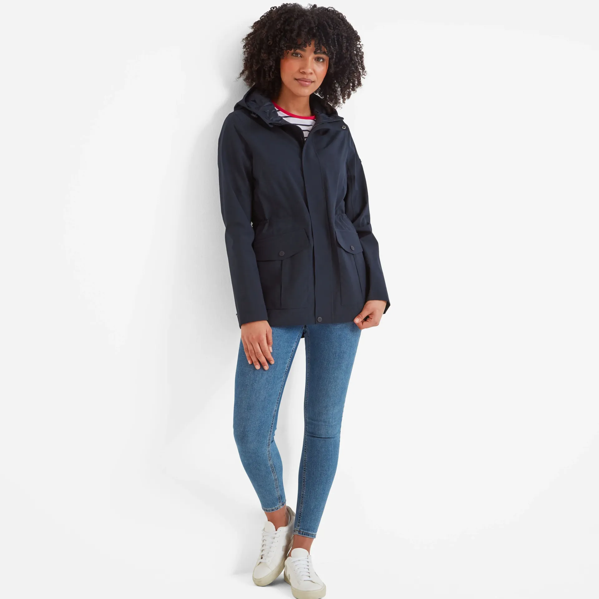 Product DescriptionOur Burradon womens waterproof jacket is designed to be your everyday waterproof companion. This jacket will keep you dry in all but the heaviest rain. There are plenty of handy places to stash stuff; on the outside, there are two angled patch pockets plus there’s a pocket on the inside. Also windproof, it’ll keep the breeze out even when it’s really blustery. Layered over a hoodie or jumper for extra cosiness.Features Waterproof (10K), Breathable (10K), and WindproofFully taped seamsWater repellent coating (DWR)Zip opening fastened with press studs u0026amp; velcro Toggle adjusters on the hood openingPress stud adjuster on the back of hood2 Lower patch pockets with side entry u0026amp; 1 inner zip pocketPress stud cuff adjustersToggle adjusters on the inner waistTOG24 badge on sleeveFitStudio model Natasha is wearing size 8 and is 5’10