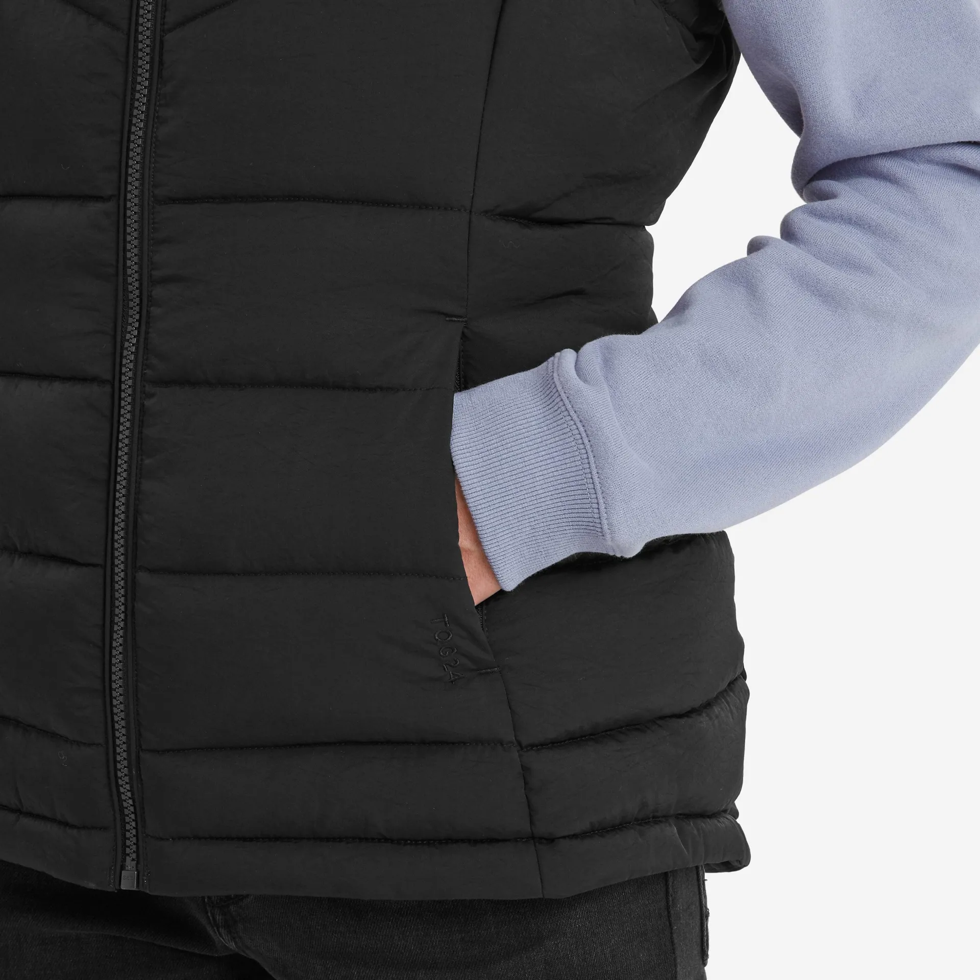 Product DescriptionFor those crisp mornings spent walking the dog, or nipping into town, the Calvo gilet will prove to be your favourite go-to garment. Filled with toasty-warm insulation and stitched up in a chevron and straight quilted design, this gilet offers the cosiest feeling of warmth around your chest, while also allowing for free movement of your arms on chilly days. With a handy hood and water-repellent coating, the gilet gives you light rain protection, while the zip pockets help keep your essentials safe and your hands warm.FeaturesLight rain protection, wind resistant and warmPolyester FillingStraight and chevron quilted designWater repellent coating (WR)Toggle adjusters on the hood openingZip opening on front2 lower zip pocketsTOG24 embroidery on the pocketFitStudio model Meg is wearing size 8 and is 5’9