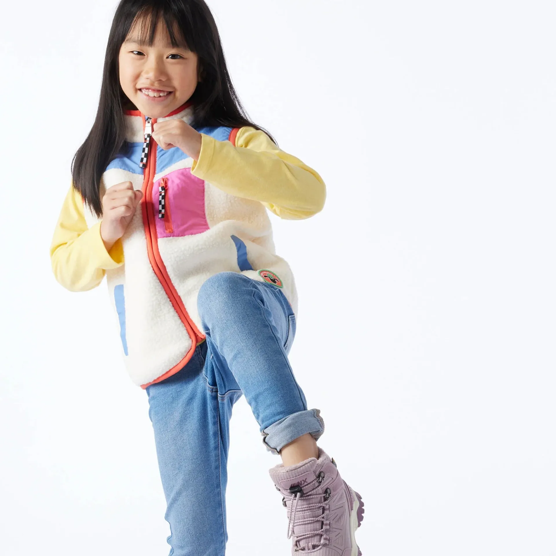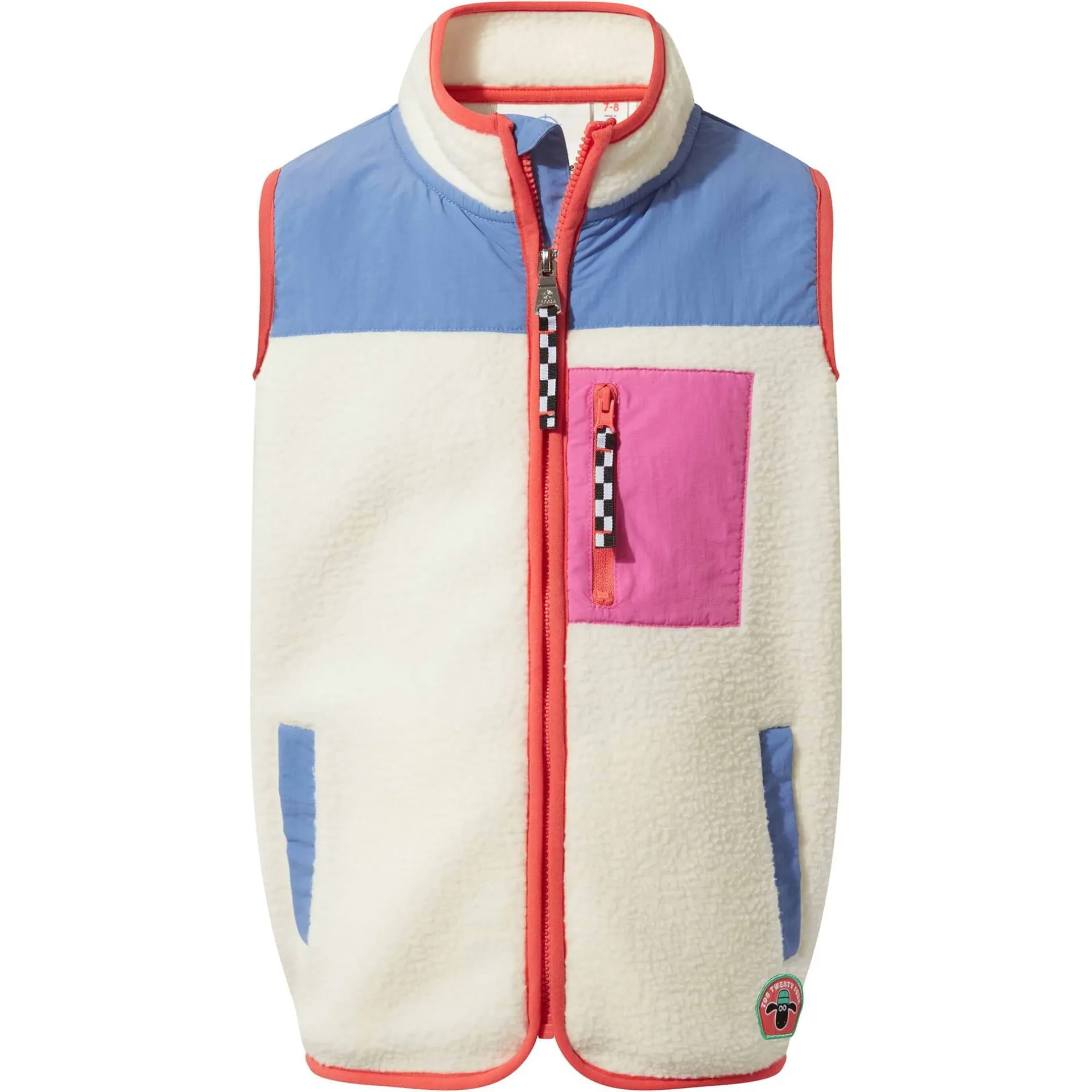 Product DescriptionWrap up your little lamb in woolly warmth with the TOG24 X Shaun the Sheep Damara kidsâ fleece gilet! Made from super cosy Sherpa fleece, this snug layer is perfect for popping on over a jumper or hoodie, and is ready and raring to go for whatever outdoor adventures your little one is into, perhaps a pop-out to the park, or just running wild in the garden like Shaun and the flock. Designed for comfort (and playtime practicality!) this heavy fleece gilet features contrast fabric panels, a handy zipped chest pocket and two lower pockets for keeping little hands warm. The elastic binding on the edges ensures a comfy fit, while the slightly curved hem at the front adds a cool touch. With Shaun the Sheep branding above the hem, and a handy name label on the inner, itâs a must-have for young fans who want the world to know they love Shaun the Sheep. Ideal for layering on chilly days, this kidsâ gilet will keep your little one snug and warm all day long.FeaturesTOG24 X Shaun the Sheep collaborationSherpa fleece giletContrast fabric panels at the top u0026amp; chest pocketElastic binding on the zip edge, neck, hem u0026amp; armholes2 lower pocketsName label on the innerShaun the Sheep branding above hemFitMaterial CompositionShell 1: 100% Polyester, Shell 2: 100% PolyamideCareMachine wash at 30c, Do not bleach, Do not tumble dry, Cool iron, Do not dry clean, Wash with similar colours, Specific care instuctions can be found on your garment care label