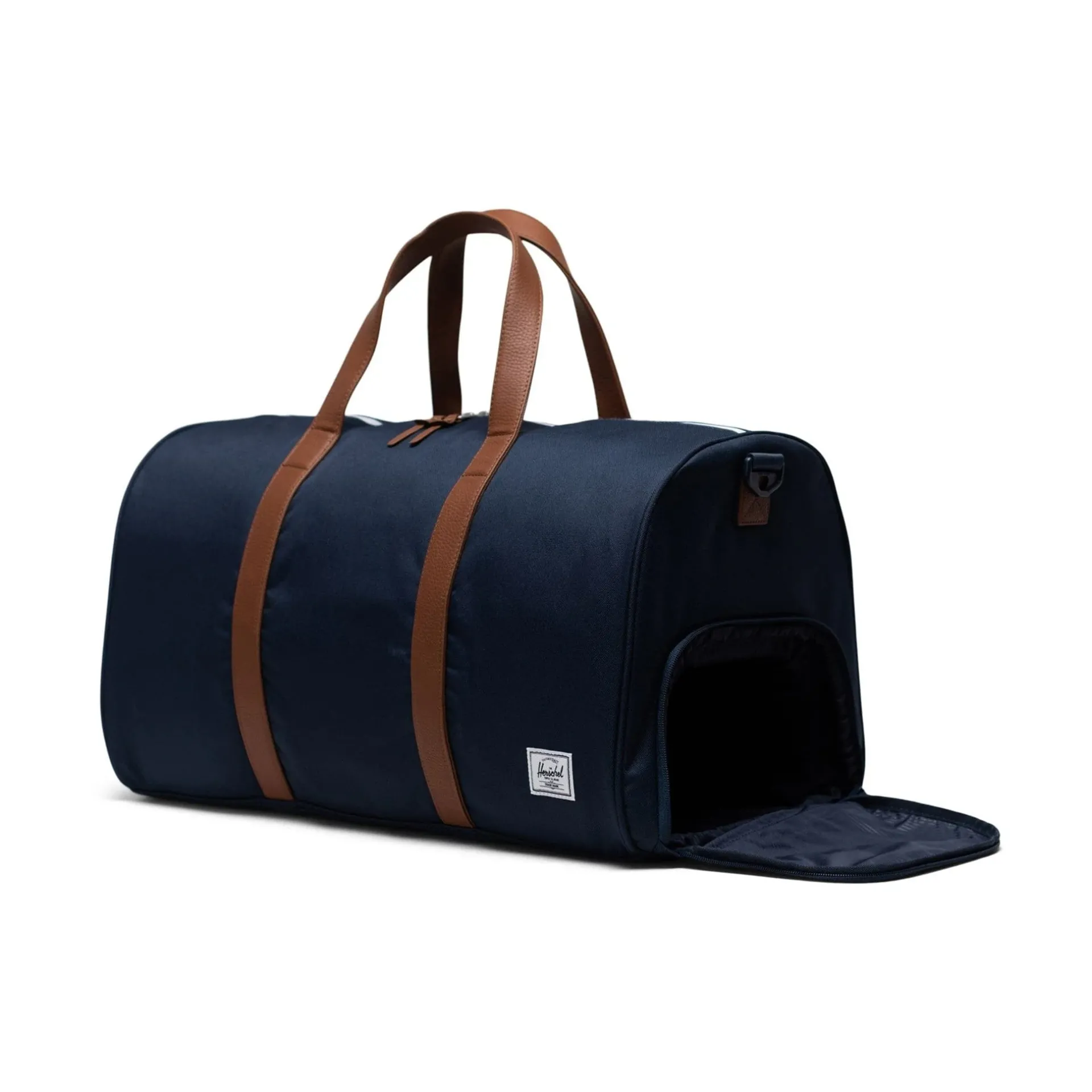 Product DescriptionThe Novel duffle is an ideal weekender that features a functional side-access shoe compartment, keeping footwear separate and easily accessible.FeaturesCustom striped fabric linerSignature shoe compartmentInternal storage sleeveTwo-way waterproof zipperReinforced and articulated carrying handlesRemovable padded webbing shoulder strapClassic woven labelFitDimension: 11.75
