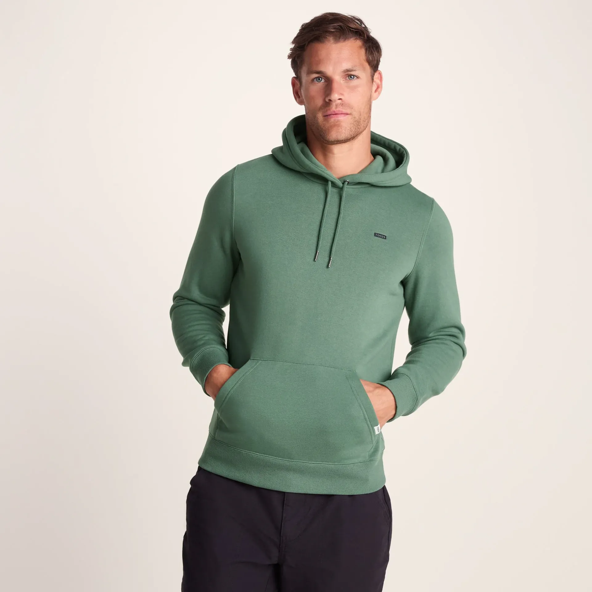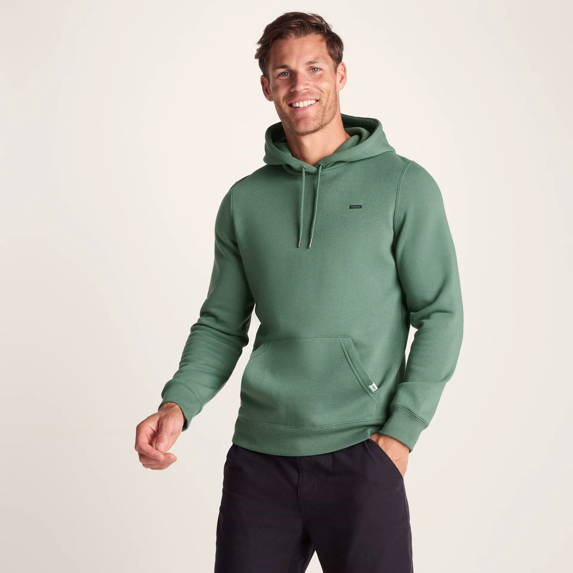 Product DescriptionThe Holcombe men’s hoodie is about to become your new go-to for everything from grabbing a morning coffee to evening strolls in the countryside.nMade from supersoft brushed-back fabric, this men’s hoodie feels incredible against your skin – so comfy, you’ll want to live in it all weekend. The on-trend design gives this men’s pullover a laid-back vibe that’ll pair perfectly with your favourite jeans or joggers.nWhen the breeze picks up, just tighten the adjustable drawcords on the hood to create a snug fit around your face. The classic kangaroo pocket on this men’s hoody is perfect for warming your hands or stashing your phone and keys while on the go.nWith a ribbed hem and cuffs that gently hug your wrists and waist, the Holcombe men’s hoody keeps the warmth in without feeling too tight. Plus, the subtle TOG24 embroidery on the chest adds a nice touch of detail.nRelaxed, reliable, and ridiculously comfy – the Holcombe men’s pullover is the kind of quality and comfort you’ll want to reaFeaturesSupersoft brushed back hoodieDrawcords on the hood openingKangaroo pocket Rib cuffs u0026amp; hemTOG24 embroidery to chestFitStudio model Tyler is wearing size M and is 6’4