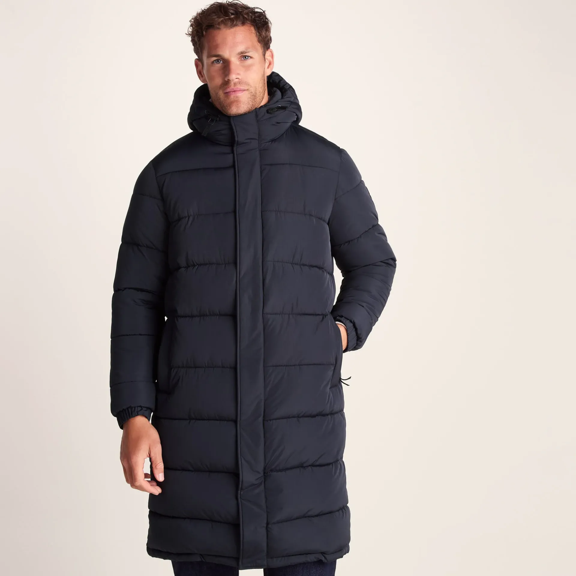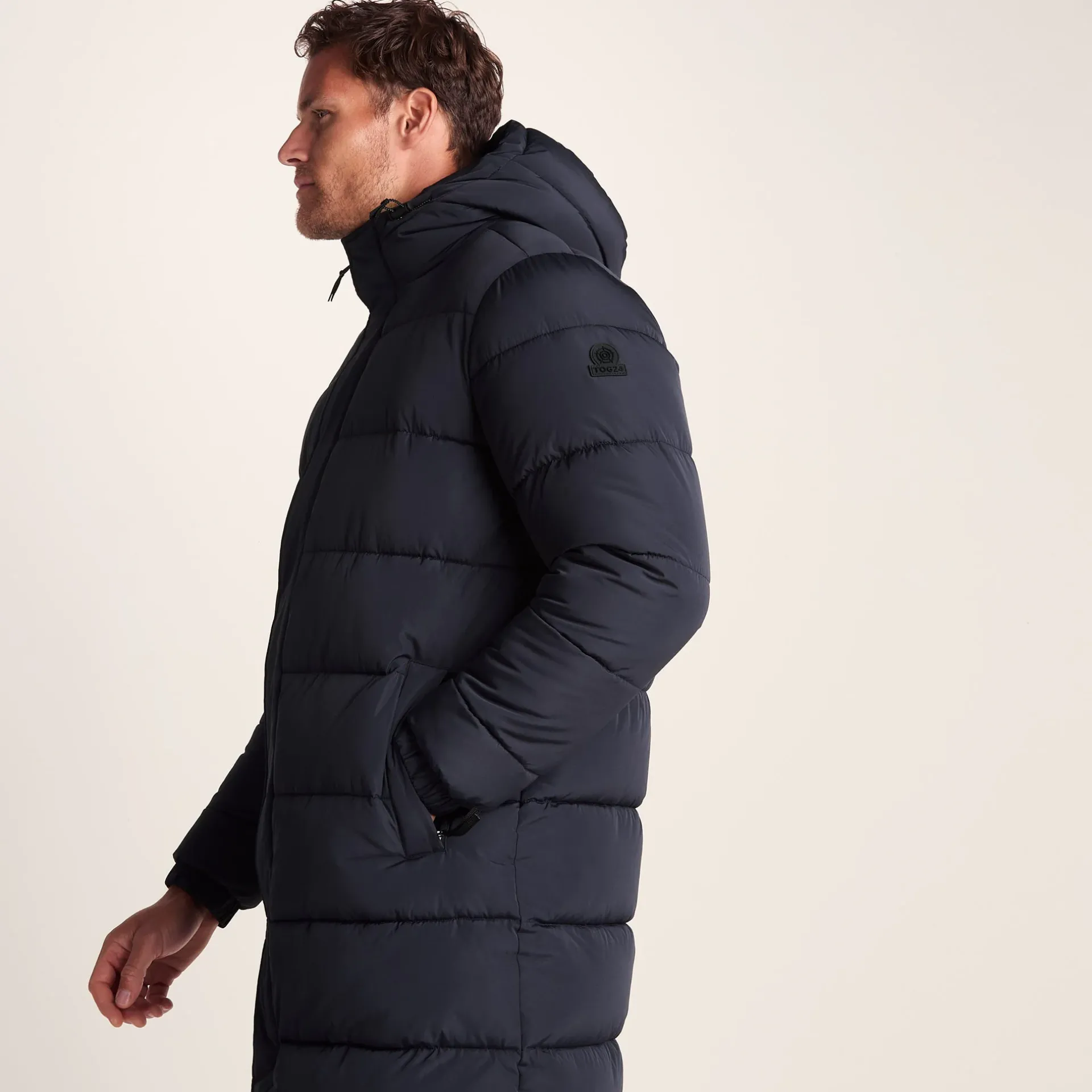 Product DescriptionThe TOG24 Langrick menâs padded jacket is a stylish and highly functional choice for colder months, designed with added length for both coverage and a modern, on-trend look. Keeping you cosy with its padded baffles and full-length covered zip, as well as a high performance insulated filling, this heavy men’s jacket is perfect for low temperatures and blustery wind. Super robust, you can count on this menâs jacket to deliver season after season – making it a great long-term addition to our existing outdoor kit.nnAn insulated hood with adjustable toggle fastenings ensures the chilly wind is kept out, while allowing for a customised fit. With durable construction, thoughtful detailing, and a versatile silhouette, the Langrick menâs jacket balances comfort, practicality, and style, making it the perfect choice for tackling winter weather with confidence. Whether heading out for outdoor adventures or everyday wear, this menâs coat is ready to perform in any cold-weather scenario.FeaturesWind resistant u0026amp; warmInsulated fillingChunky quilted design2 Way zip opening fastened with press studsToggle adjusters on the hood opening2 Lower zip pockets, 1 inner zip pocketElasticated cuffsTOG24 badge on sleeveFitStudio model Meg Dress 8 uk Height 5’10* Bust 34 Waist 25.5