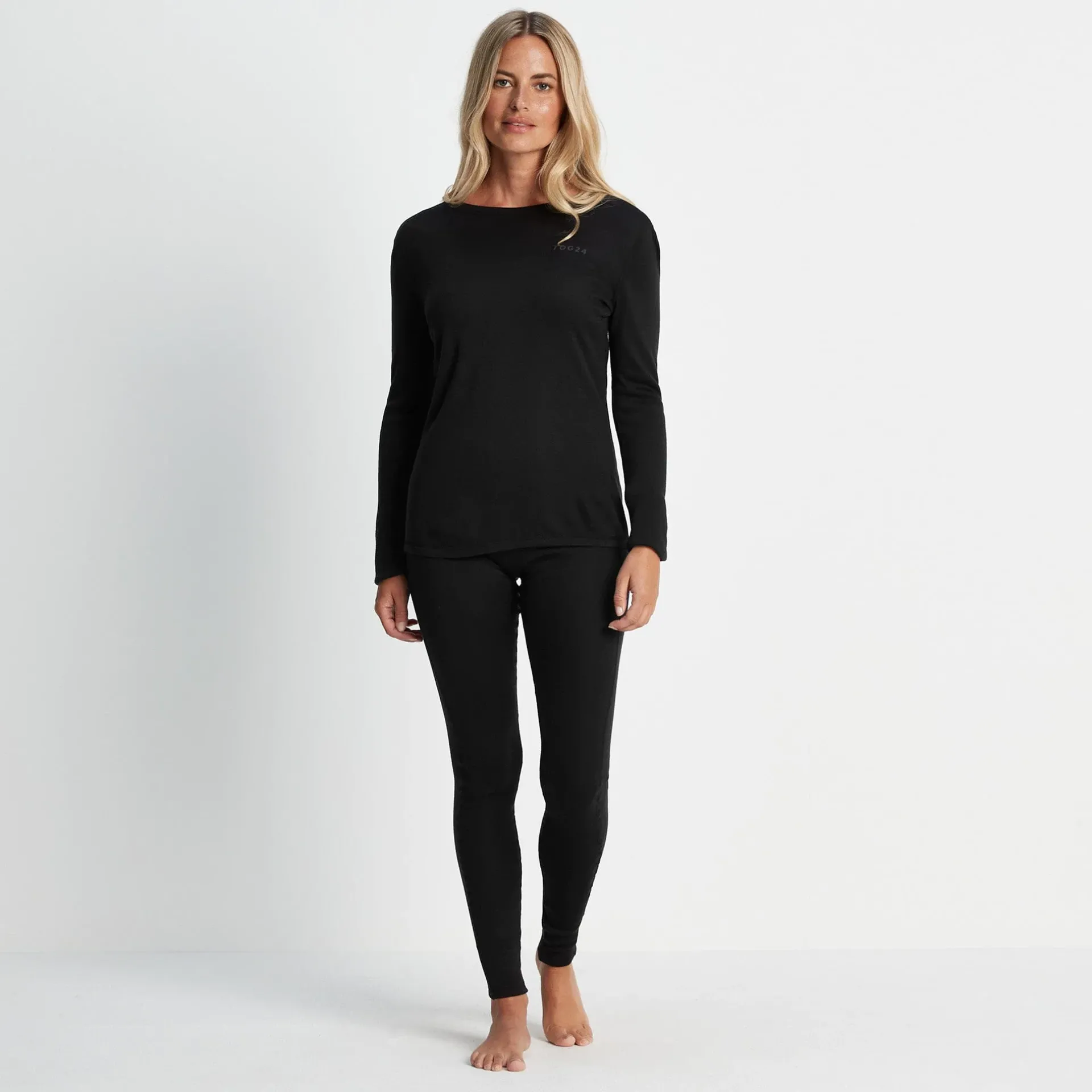 Product DescriptionOur Meru women’s base layer set offers a luxuriously soft alternative to your average set of thermals. Made using our Cashmere Touch fabric, this womens base layer set is super soft against the skin, all the while maintaining breathability and durability. Ideal for hiking, outdoor running, camping, skiing, snowboarding, and trekking, Meru is designed to quickly wick away moisture while offering odour control when working up a sweat. With inner anti-chafe seams, you can confidently layer even your thickest jackets, walking trousers, and snow suits over these layers without risking skin irritation or itching. Available in a simple crew neck top and leggings, these figure-hugging base layers are optimally comfortable and stylishly sleek.FeaturesSuper soft u0026amp; stretchy base layer setBreathable u0026amp; lightweightQuick wicking u0026amp; odour eliminatingAnti chafe seamsCrew neck top with TOG24 print on the chestLegging with TOG24 logo on the waistbandFitStudio model Isabelle is wearing size 8 and is 5’7