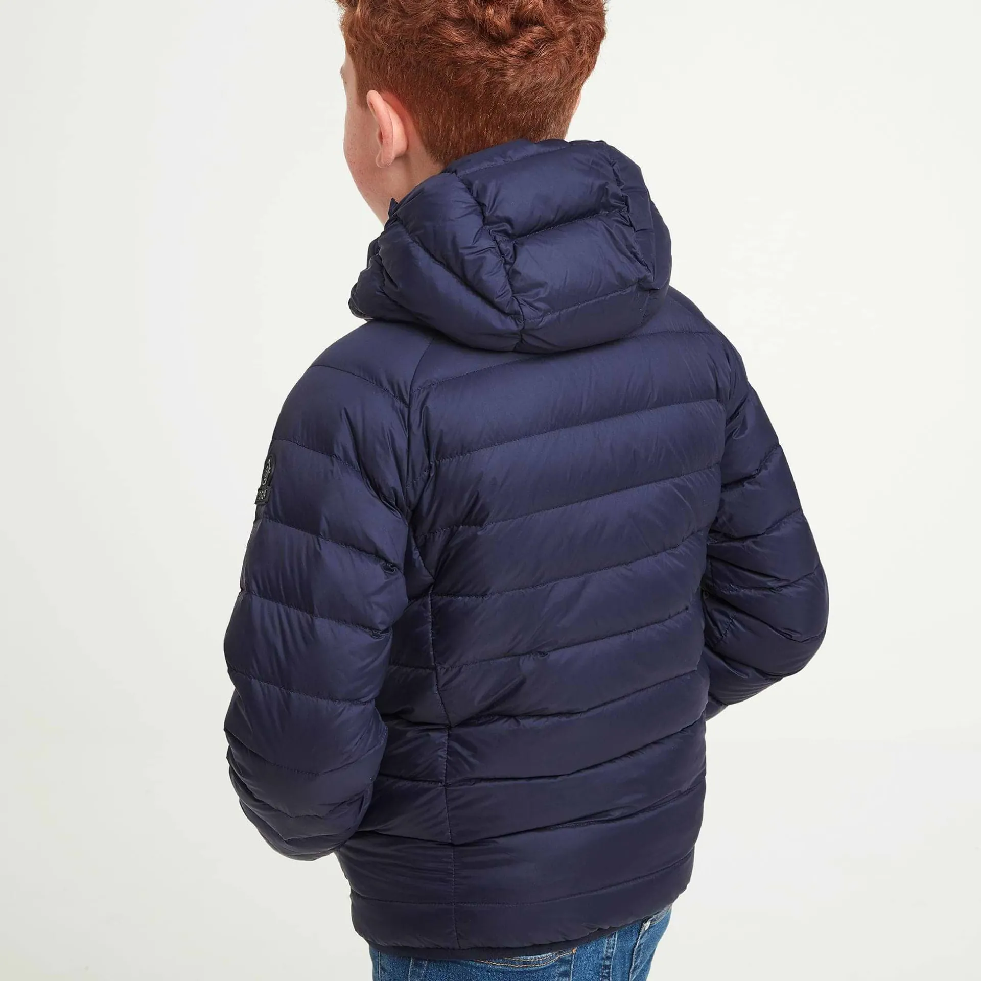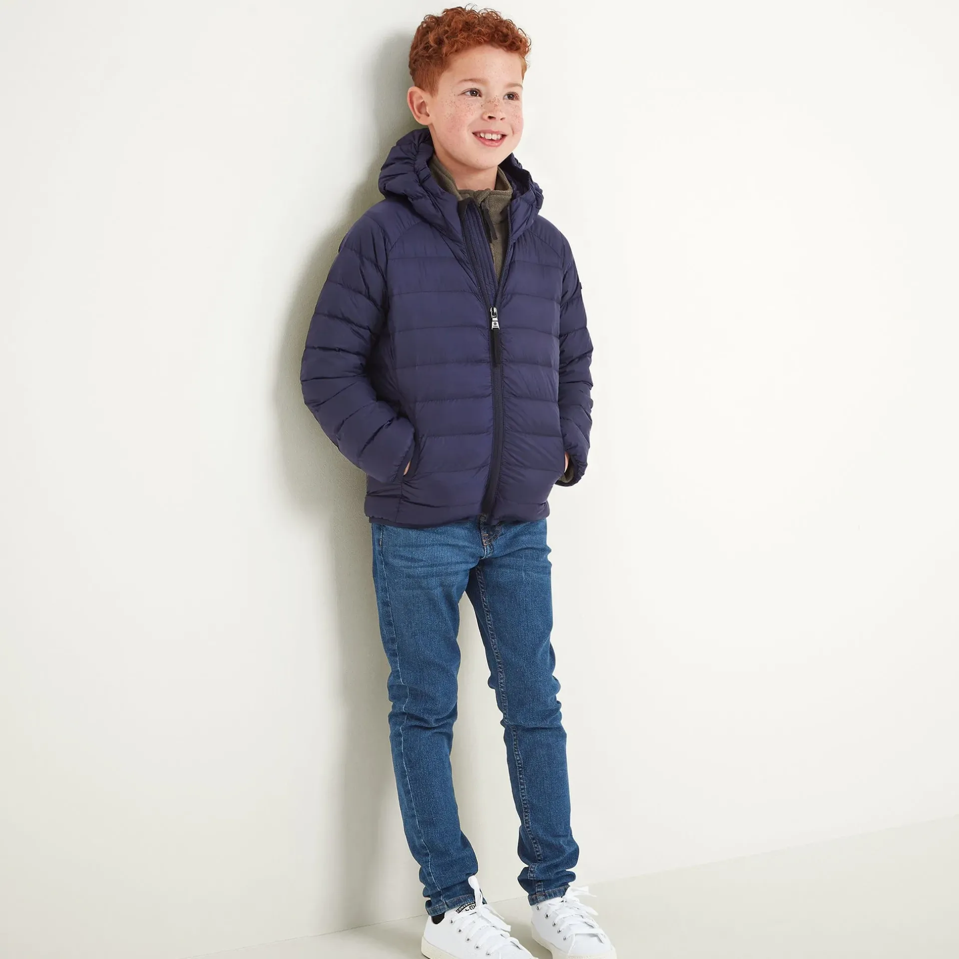 Clearance*This product is excluded from all additional promo code discountsProduct DescriptionButtery soft to the touch, lightweight and yet super warm thanks to the natural insulating properties of duck down, our Midsley kids jacket is perfect for school and travel. This fully breathable jacket can be worn all year round, as a coat in the spring and summer or as an extra layer under a lightweight waterproof when it turns really cold and wet. Designed by our team in West Yorkshire to keep your child warm, comfortable and safe, Midsley has stretchy binding at the hood, cuffs and hem for a snug fit and to keep out the wind. There are two lower pockets, also with stretchy binding, for storing all those essentials and the finishing touch is a rubber Yorkshire Rose badge on the sleeve, just like the adult jackets.FeaturesVery warm with 90% duck down (600 fill power) and 10% feathersLightweight and breathableQuilted in supersoft fabricFull length zipFixed hood with stretchy binding2 lower pockets with stretchy bindingStretchy binding on cuffs and hemRubber Yorkshire Rose badge on sleeveFitMaterial CompositionOuter: 100% Polyamide. Lining: 100% Polyamide. Fill: 90% Down, 10% Feather.CareMachine washable, tumble drying safe.