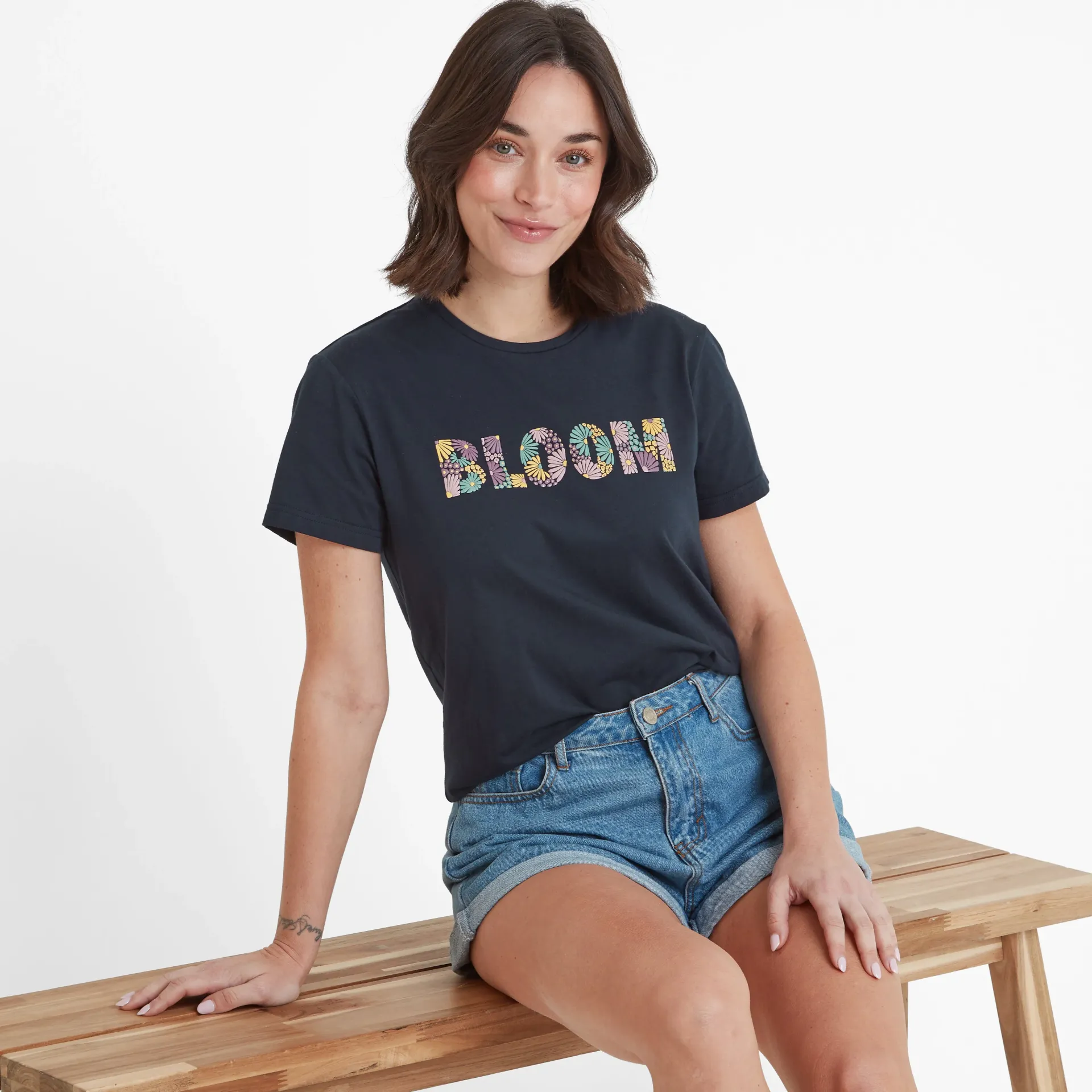 Clearance*This product is excluded from all additional promo code discountsProduct DescriptionThe Minda printed T-shirt gives all the summer vibes. Crafted from supersoft cotton, this T-shirt is lightweight, comfy, and built for laid-back days. Featuring the uplifting slogan ‘BLOOM’ in raised print on the chest, it’s a subtle reminder to embrace the little joys in life. With short sleeves and a relaxed fit, it goes with almost anything and is perfect for any casual occasion, from easy-going strolls with ice cream to unwinding in the garden. Finished with a TOG24 label at the hem, the Minda Tee is your go-to for simple style and everyday comfort.FeaturesSUPERSOFT COTTON TEESHORT SLEEVESRAISED PRINTED SLOGAN ON THE CHESTTOG24 LABEL ON THE HEMFitStudio model Georgia Dress 8 UK, Height 5’10