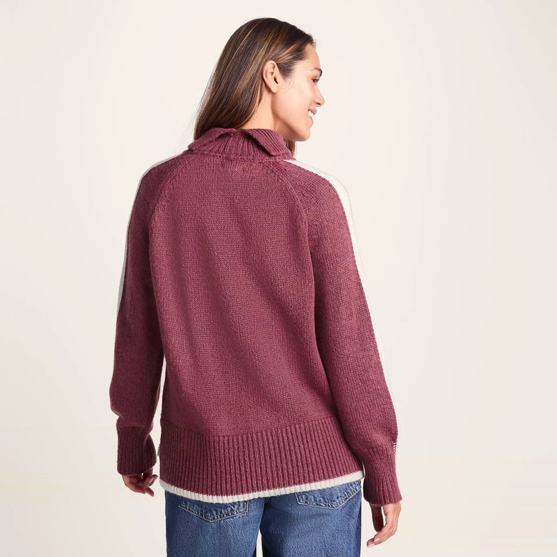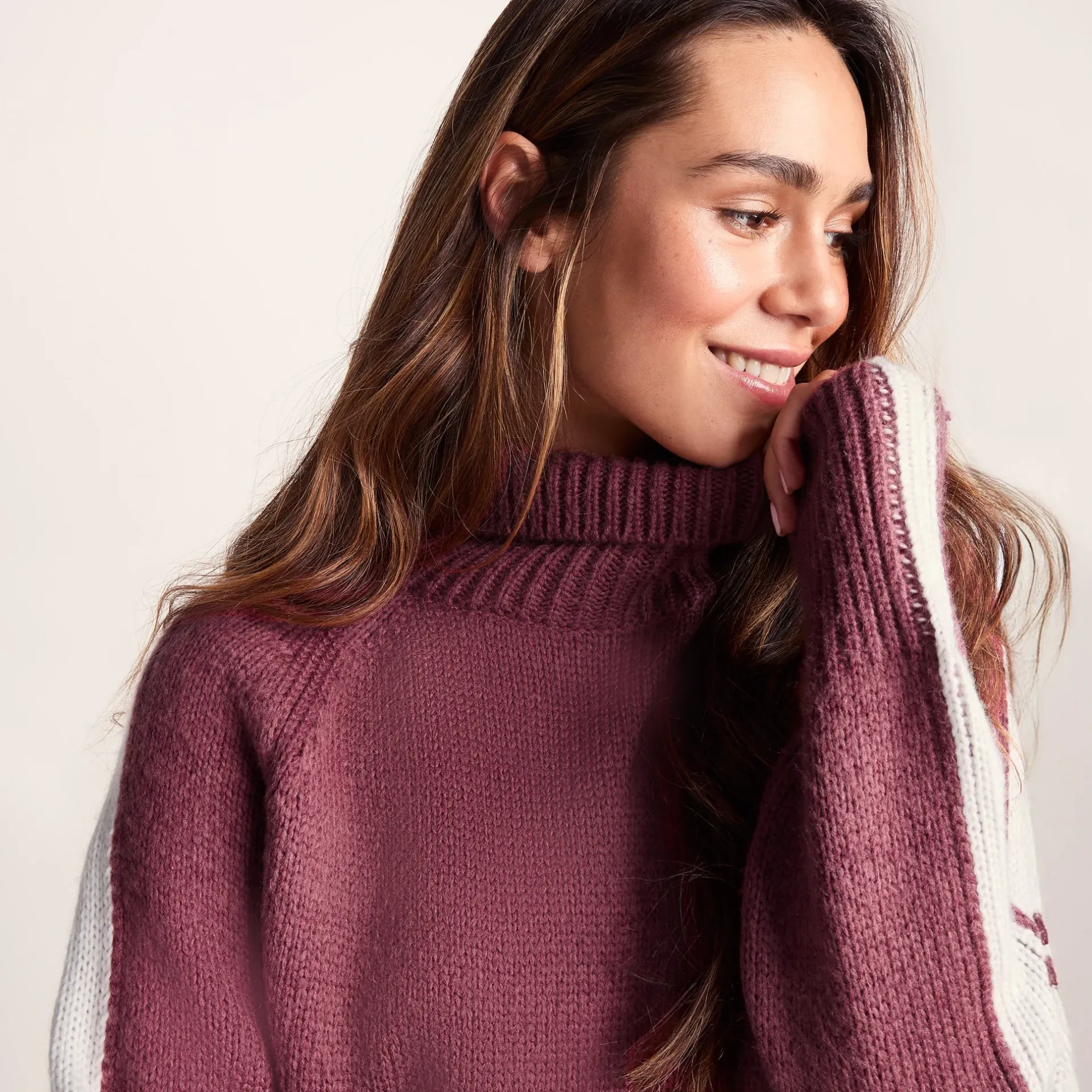 Product DescriptionSay hello to the Moira women’s sweater. Gone are the days of fidgeting with tight roll necks; thanks to a relaxed split opening at the back of the collar you can breathe easy while staying toasty and snug. The contrast colour stripe detail gives this women’s jumper a subtle pop, and thanks to the raglan sleeves, you won’t be fighting with this women’s jumper every time you throw a jacket on or off. Once you feel how soft this knitted jumper is, you’ll be finding excuses to wear it everywhere. The ribbed collar, hem and cuffs keep it all neat, and the relaxed fit means you’ve got room to layer. This women’s sweater is perfect for those days when comfort is non-negotiable, but you still want to look like you’ve made an effort. Layer it under your favourite coat or wear it solo – either way, the Moira women’s jumper has your back.FeaturesKnitted roll neck jumperContrast colour stripe detailRaglan sleevesRelaxed split opening to back of collarRib collar, hem and cuffsTOG24 woven label in the side seamFitStudio model Narine Dress 6 uk Height 5′ 6½* Bust 32 Waist 24