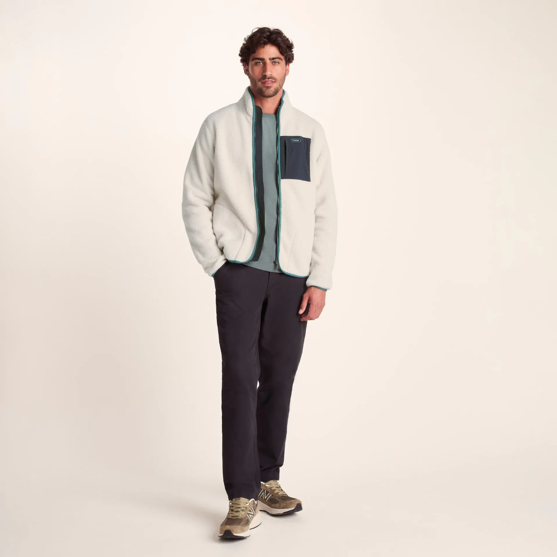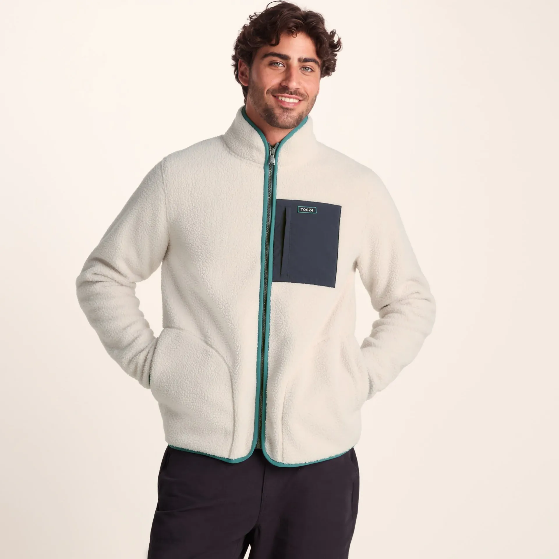 Product DescriptionThe Cameron sherpa fleece jacket is both super-warm and super-soft and really does the job of keeping the heat in and the chill out. Featuring a contrast colour chest pocket and binding, and a relaxed fit for a stylish finish, aswell as a zip pocket to the chest and two lower hand warmer pockets. Finished with the TOG24 badge on the chest, the Cameron is the pefect throw on fleece jacket for thos chilly but dry days.FeaturesWarm sherpa jacketLaid on fabric to chest pocketZip opening with elasticated binding1 zip chest pocket, 2 lower pockets – no zipsElasticated binding on collar, hem and cuffsTOG24 badge on the chestFitStudio model Guilerme is wearing size M and is 6?2.5