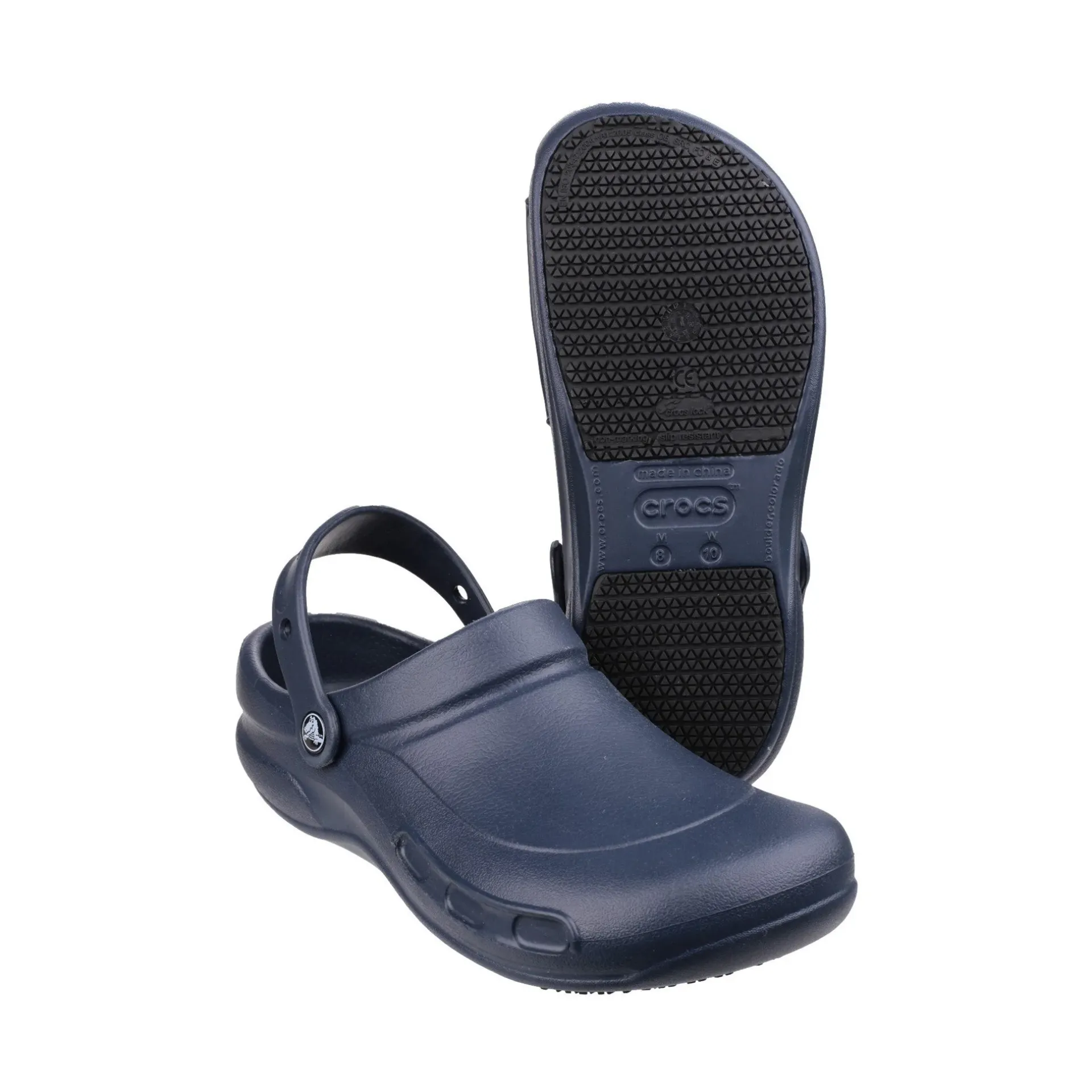 Product DescriptionNo one needs or deserves comfortable ergonomic shoes more than people working in food service, hospitality and health careFeaturesRe-designed based on Crocs original shoes, these new clogs for men and women incorporate workplace-friendly featuresCrocs Bistro clog uses a new tread design, Crocs Lock, provides slip resistance that exceeds industry standardsTo further protect your feet at work, these clogs have an enclosed toe and heel, and a thicker metatarsal areaOf course, we didn’t forget about comfortCrocs Bistro shoes are made with our innovative Croslite materialShoes give you a custom fit by conforming to your feetSlip your feet into a pair of Crocs Bistro clogs and you may not want to take them off. Never think about sore feet againSRC Slip Resistance on ceramic surface with soap and on steel with glycerolRefer to Unisex Size Conversion. Product Sole displays US Size not UK.FitMaterial CompositionUpper: 100% Thermoplastic. Lining: Unlined. Sole: 100% Rubber.Care