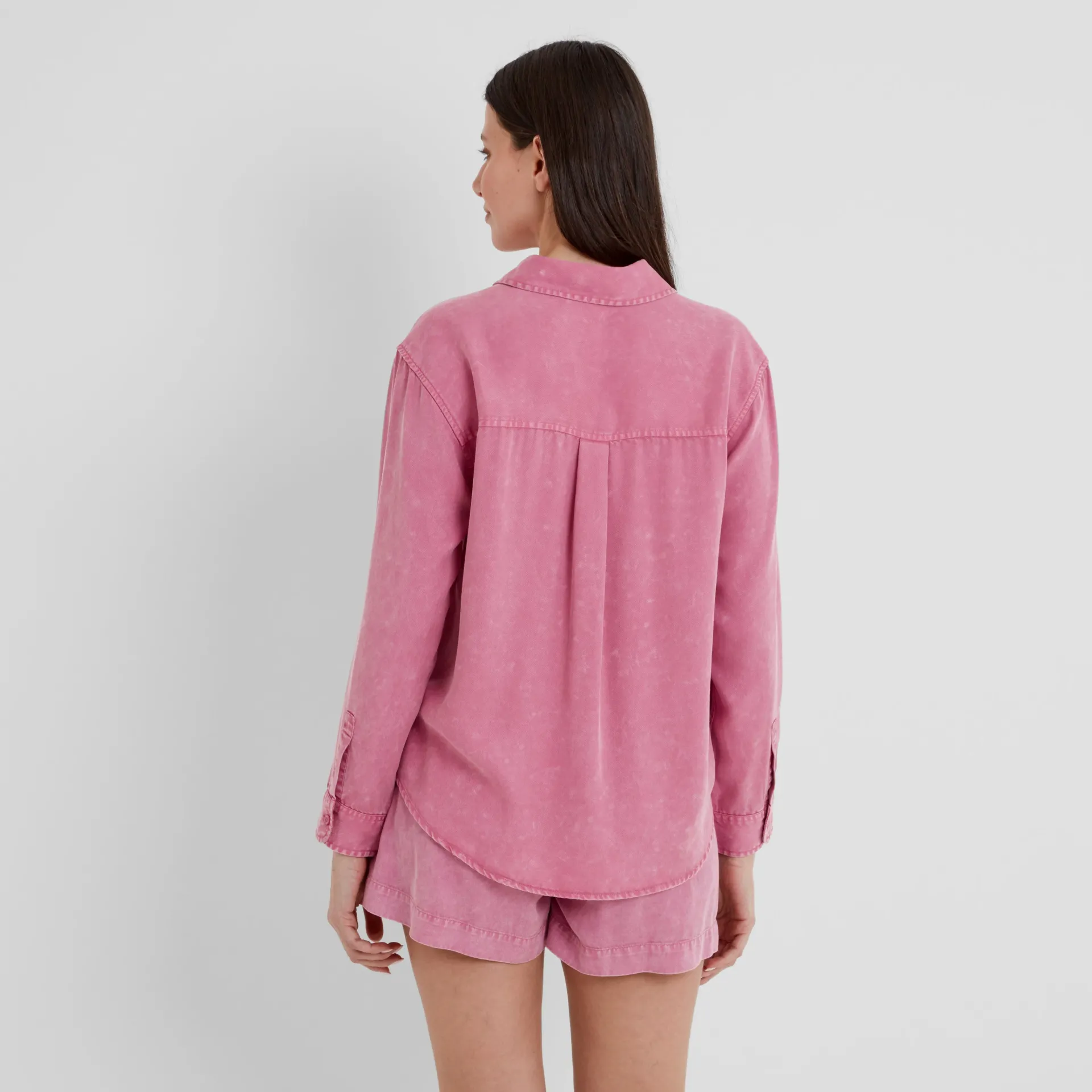 Clearance*This product is excluded from all additional promo code discountsProduct DescriptionThe Irena Shirt is a vibrant take on a wardrobe classic, designed in a striking pink with a soft faded wash. Made from breathable TENCEL™ Lyocell, it offers a drapey, lightweight feel that’s perfect for everyday wear. Featuring pearlised buttons, a chest patch pocket, and a subtle pleat at the back that gives the shirt its structure, it balances casual style with thoughtful details. The curved hem shape at the front and back adds a flattering silhouette, making it easy to wear loose or tucked in. Pair it with light-wash jeans for a fresh daytime look or style it with tailored trousers for a smart-casual outfit. Whether you’re heading out for brunch or relaxing at home, this versatile shirt delivers on comfort and colour.FeaturesTencel™ Lyocell ShirtFaded WashPearlised ButtonsPatch Pocket On The ChestPleat On BackBack YokeCurved Hem ShapePearlised Button To CuffLogo Embroidery Above The HemFitStudio model Mayara Dress 8 UK, Height 5’11