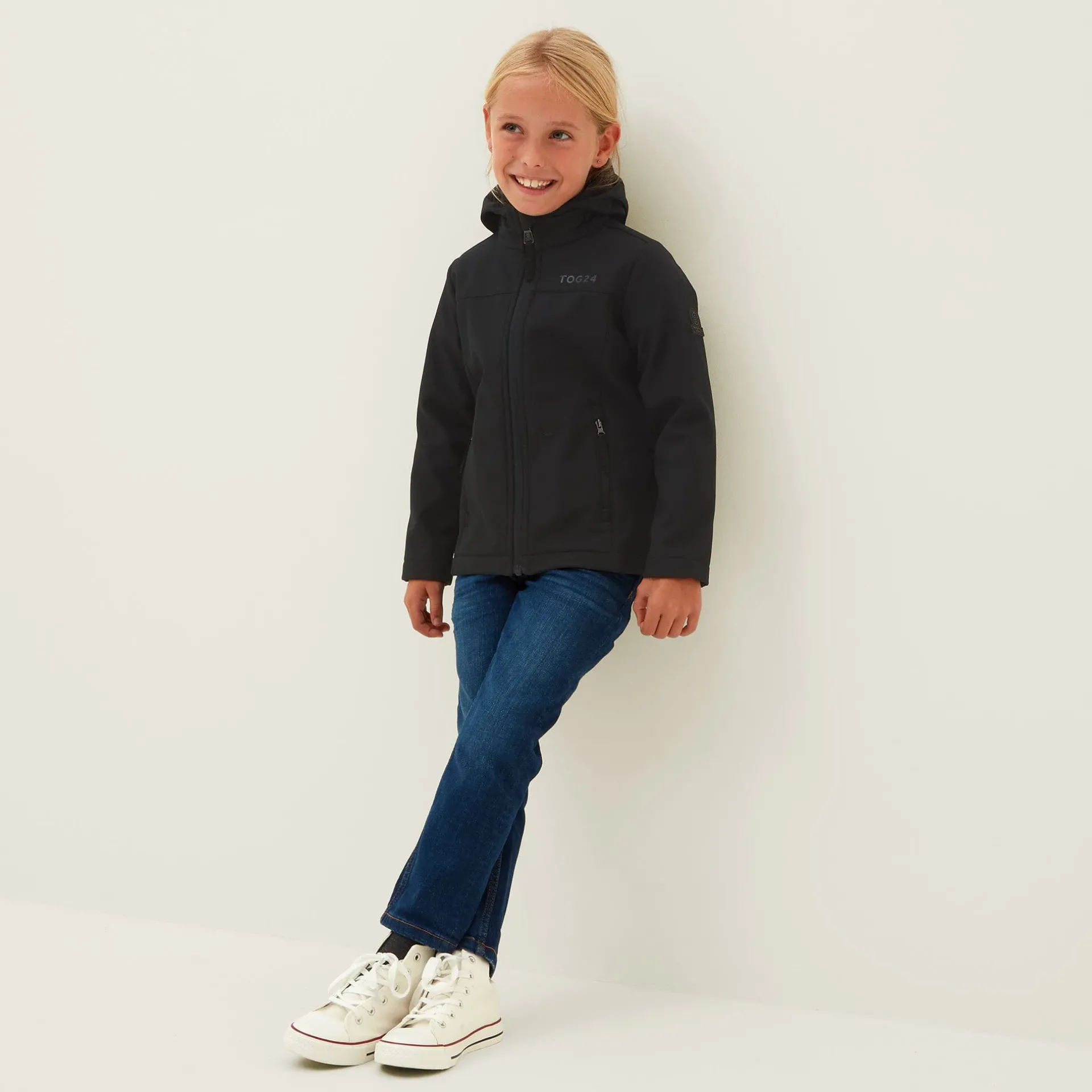 Product DescriptionActive kids love our Koroma softshell jacket that gives protection from the elements, but doesn’t restrict movement. Designed in Yorkshire, where we know just how changeable the weather can be, this versatile jacket has a durable, water resistant, windproof and fully breathable outer, a fixed, shaped, adjustable hood and a cosy, bonded inner fleece. Koroma has two handy zip pockets to keep all those essentials safe and a full length front zip with a chunky puller. It comes in dark and bright colours, so it works as a school coat and for weekends too. This lightweight jacket is finished with our signature embossed rubber Yorkshire Rose badge on the sleeve and a printed TOG24 logo on the chest.FeaturesLightweight, breathable and windproofBonded inner fleeceFull length front zip with chunky pullerFixed hood with adjuster tab at the backAdjustable hem (on sizes 10-11 u0026amp; 12-13 only)Two lower zip pocketsEmbossed rubber Yorkshire Rose badge on sleevePrinted TOG24 logo on chestFitMaterial Composition96% Polyester, 4% Elastane.CareMachine washable.