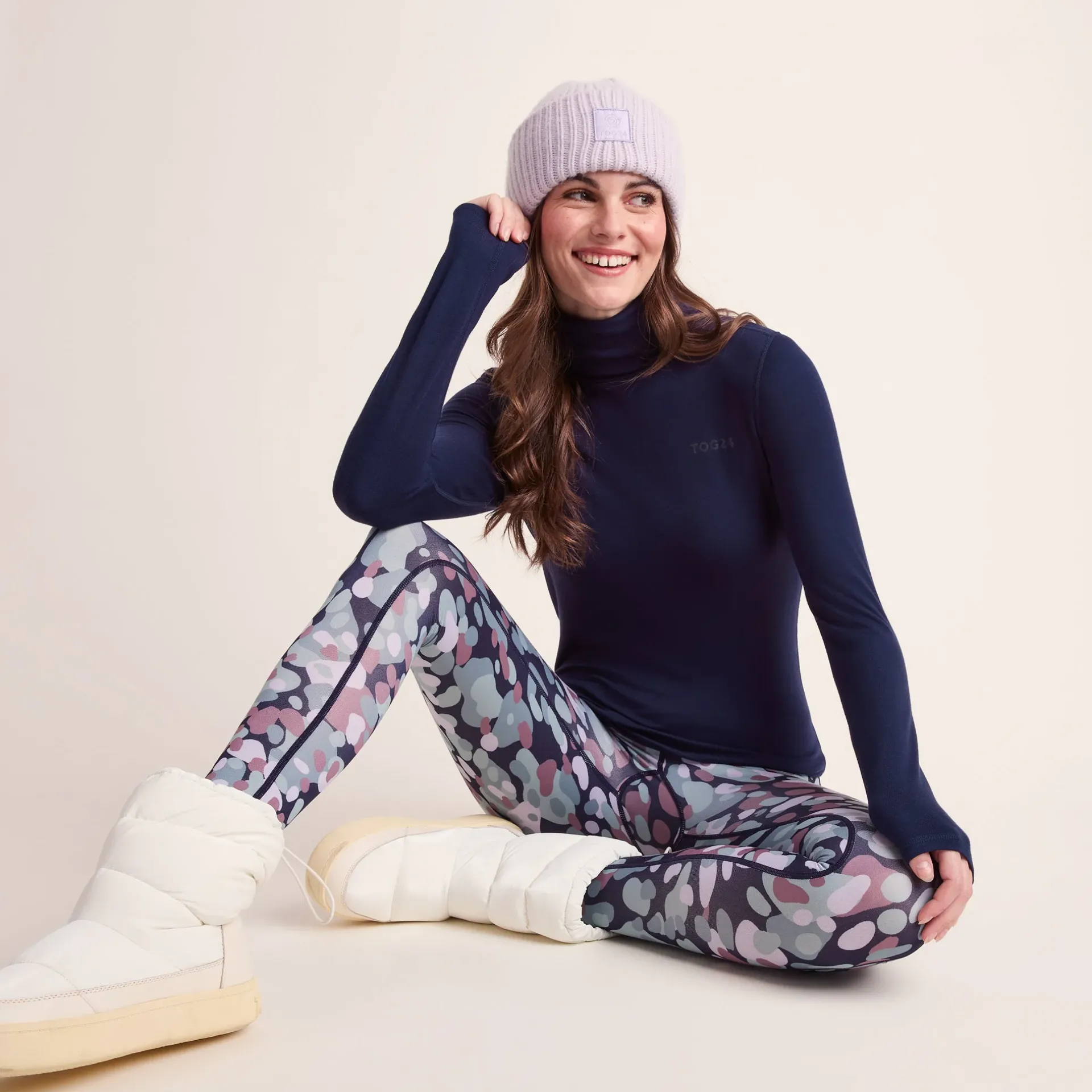 Product DescriptionIdeal for skiers, snowboarders, and those who love a winter hike, our Meru womens roll neck thermal ticks every box. Super breathable, odour resistant, anti-chafe, and buttery soft against the skin, this thermal promises excellent warmth and protection without compromising on look and feel. Super stretchy, this Meru roll neck thermal can easily be thrown on to be worn under your fleeces or winter jackets with ease. It is perfect for active lovers of the great outdoors who need a chic yet reliable base layer to perform where it counts.FeaturesSuper soft u0026amp; stretchy roll neck base layerBreathable u0026amp; lightweightQuick wicking u0026amp; odour eliminatingAnti chafe seamsTOG24 print on the chestFitStudio model Gina Dress 8/10 uk Height 5’11* Bust 34c Waist 26.5