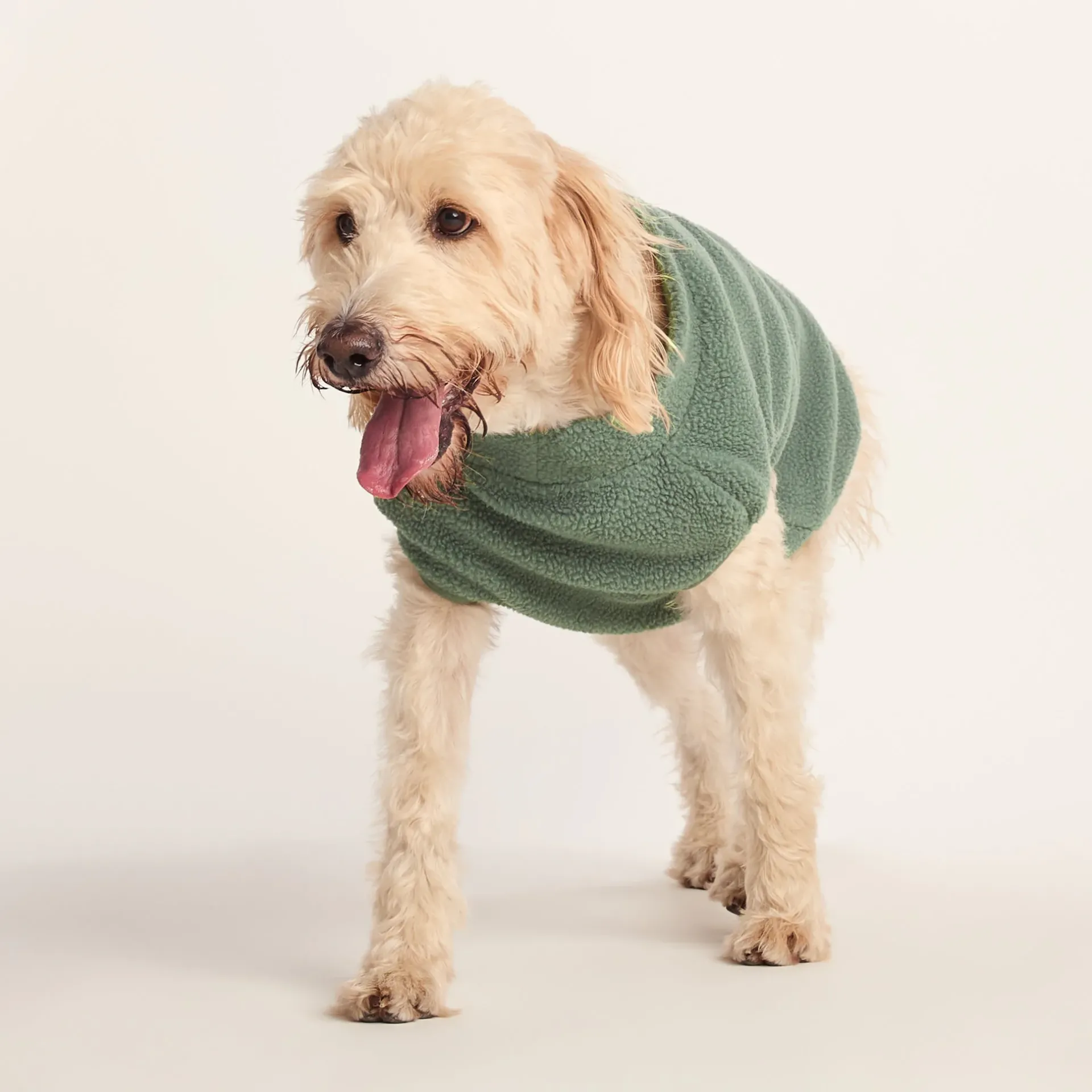 Product DescriptionGet your furry friend ready for a full day in the great outdoors with our Rover dog coat. Coming in a lovely Sherpa fabric that will keep your dog cosy in harsh weather, this coat is ideal for long days out, whether a multi-mile walk or a simple trip to the pub in the winter. Made with super soft fleece with a gently elasticated binding, your dog will love to wear this lovely dog coat. Coming in a variety of sizes to suit all dogs, finding a durable dog coat that fits your dog to a tee is easier than ever. It even comes with a handy gap for your lead attachment so you can keep your four-legged safe when you’re out and about.FeaturesSupersoft sherpa fleeceElasticated bindingHole for lead to be attachedTOG24 badge above hemIntended for pet use onlyThis is not a toy and dogs should be supervised when wearingFitMaterial Composition100% Polyester.CareMachine washable.