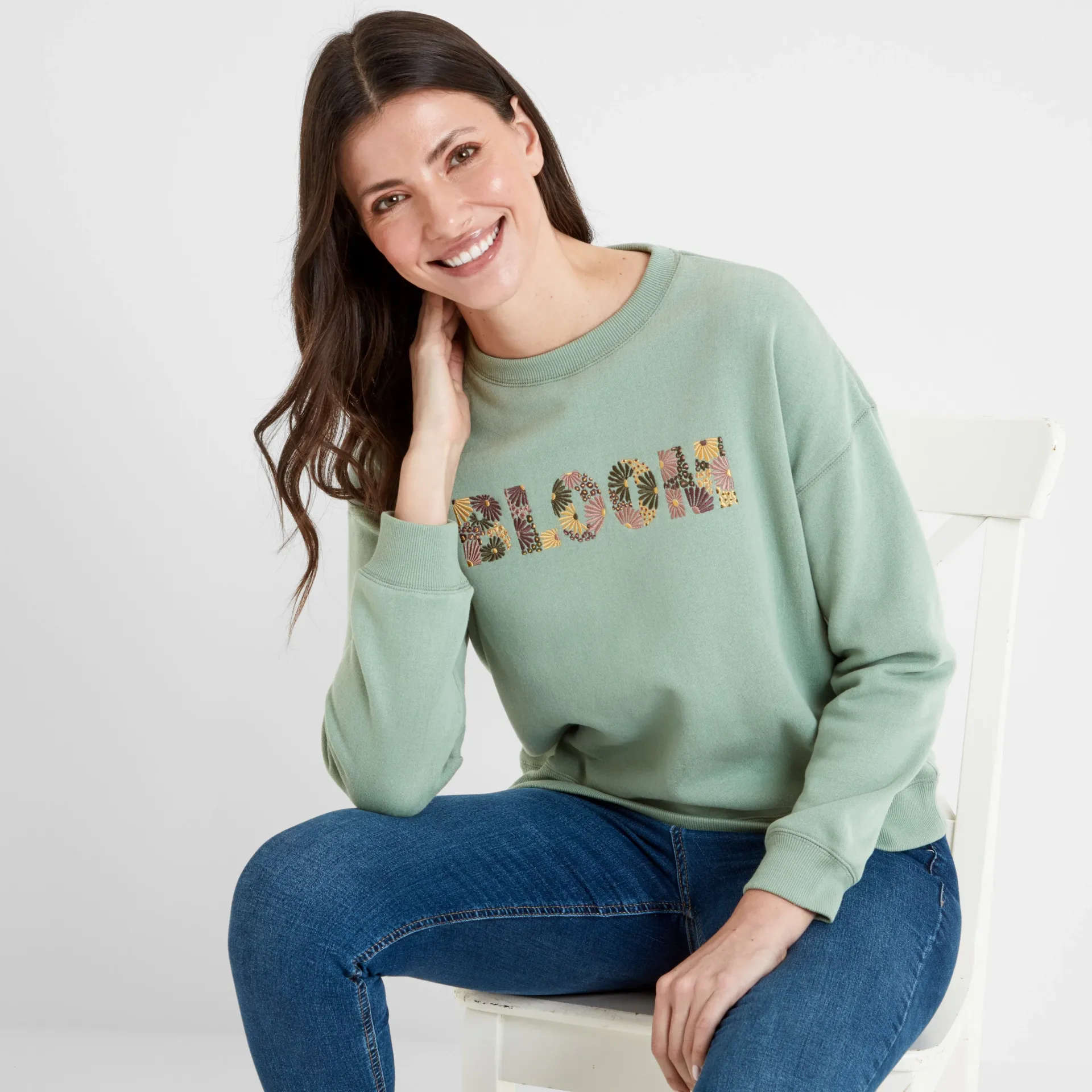 Clearance*This product is excluded from all additional promo code discountsProduct DescriptionThe Winona crew neck sweatshirt is the height of relaxed summer style. Made from supersoft brushed-back fabric, it’s cosy enough for those chillier days but still lightweight enough for layering. The relaxed dropped shoulder design gives it a laid-back vibe, while the ‘BLOOM’ slogan embroidered on the chest brings the summer vibes. Finished with ribbed neck, cuffs, and hem and the TOG24 label on the side seam, it’s perfect for everything from lazy weekends to casual outings.FeaturesSUPERSOFT BRUSH BACK SWEATRIB NECK, CUFFS u0026amp; HEMSLIGHTLY DROPPED SHOULDERSLOGAN EMBROIDERY ON CHESTTOG24 LABEL IN SIDE SEAMFitStudio model Mayara Dress 8 UK, Height 5’11